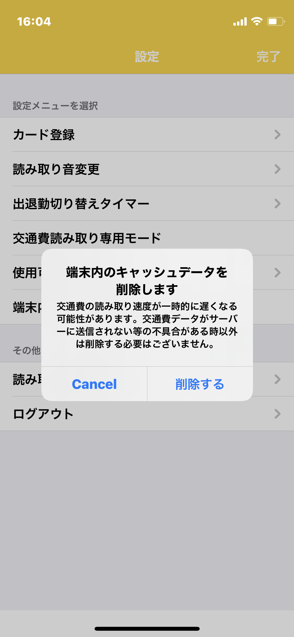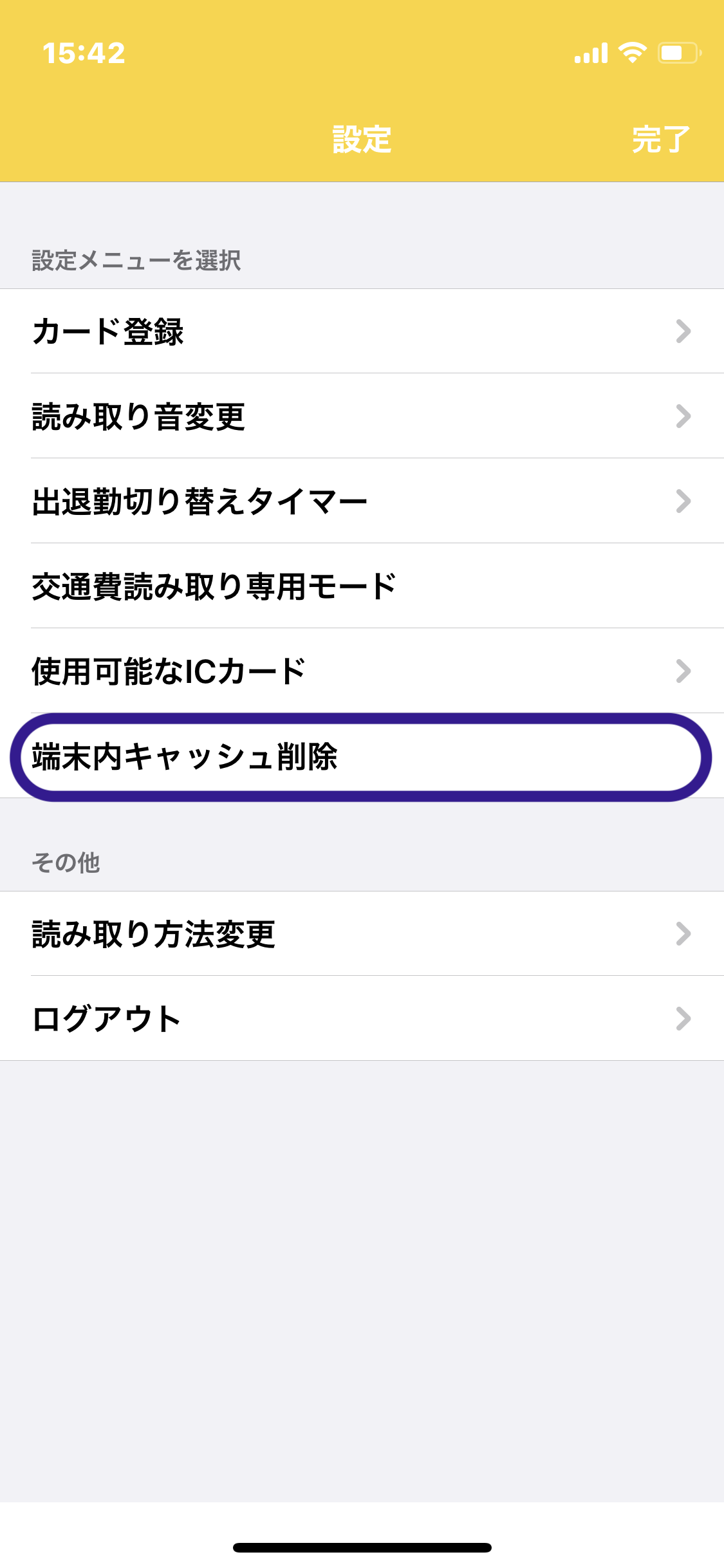 「端末内キャッシュ削除」をタップします。